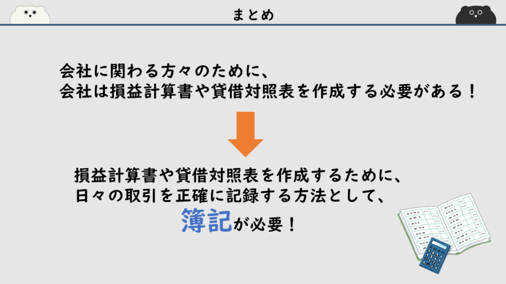 会社は損益計算書や貸借対照表を作成する必要があって、