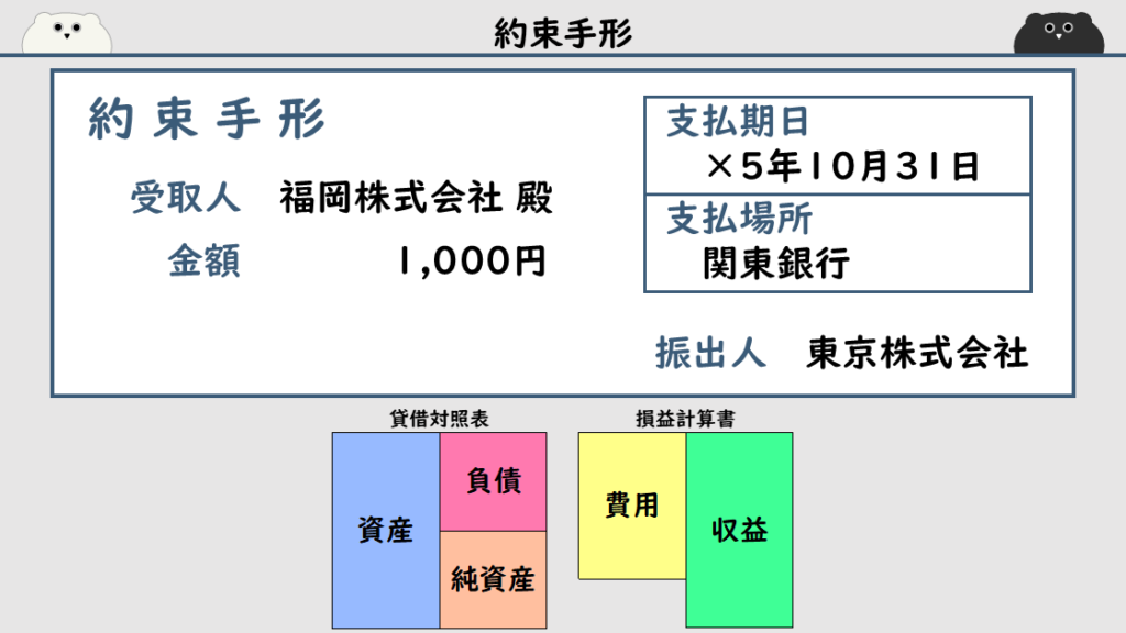 福岡株式会社は、受け取っていた約束手形1,000円が決算され、