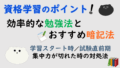 効率的な資格学習のポイント(学習スタート時/試験直前期、効果的な暗記法、集中力が切れた時の対処法)の記事はこちら!